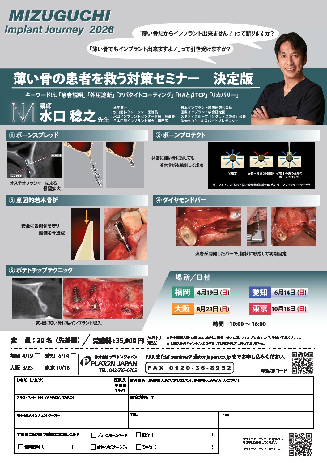 水口インプラントジャーニー2026 薄い骨の患者を救う対策セミナーin 福岡